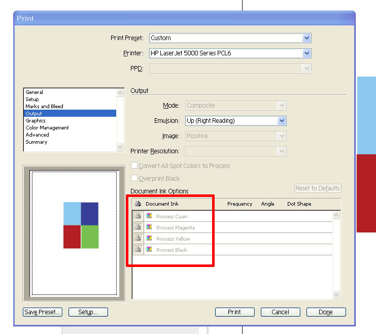 프린트 - 아웃풋 - 빨간 박스에 cmyk 활성화 방법 알고 계시는 분.....ㅠ.ㅠ