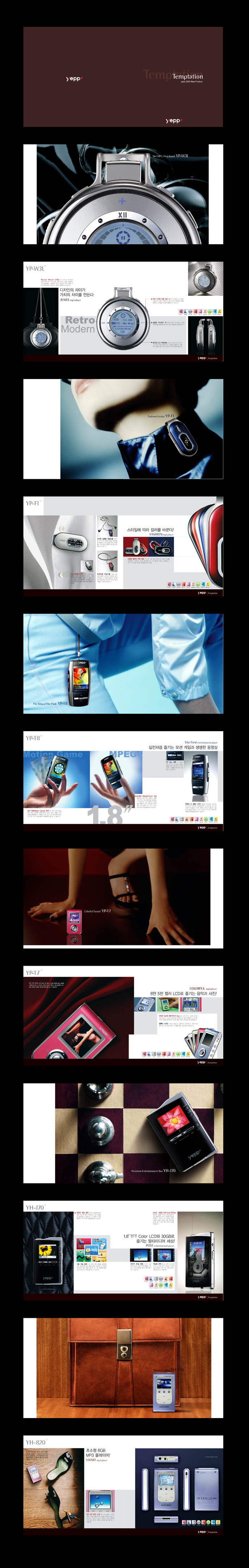 클로즈업된 이미지를 갠적으로 좋아하는데... 위에 이미지들의 그런 느낌이 참 좋네요....^^ 또 전자제품 카다록인데 패션 카다록같은 느낌도 신선하고.. 또 리듬감도 있어서 좋네요... 이미지페이지는 스프레드로 시원하게 제품설명은 모아서 깔끔하게...