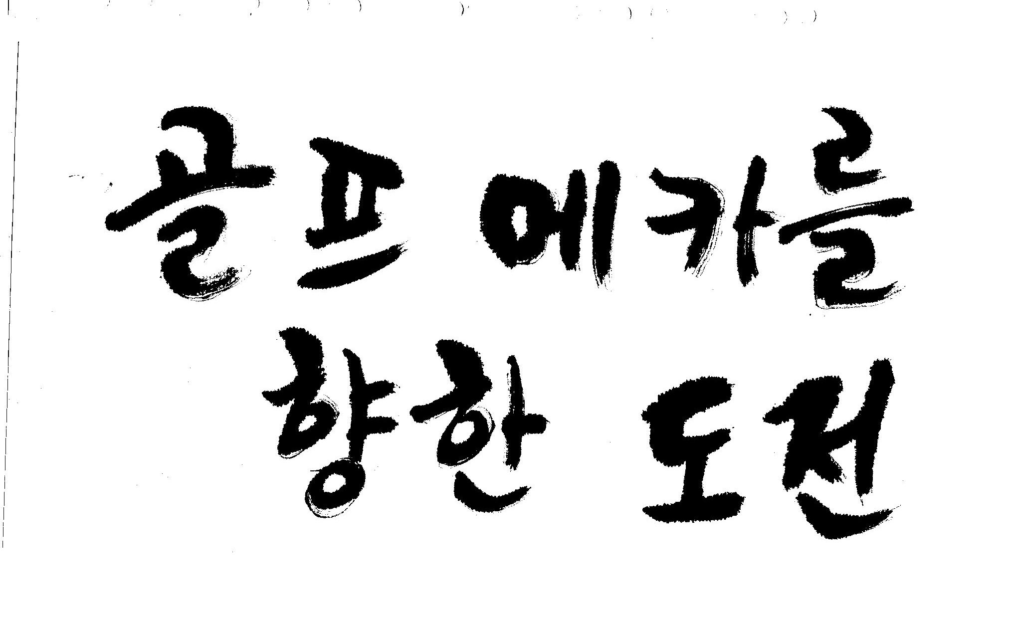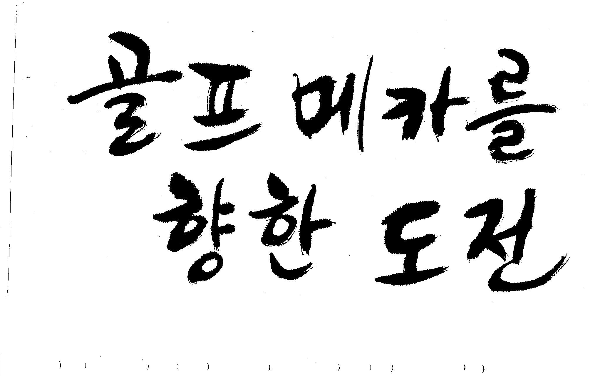 우경의 행복한 캘리세상-골프메카 김철호 일반 0 8842 2009.07.18 10:25 리듬감을 최대한 살리고 ㅡ 스포츠의 운동감과 밝음 기교섞인 획을 배제--일반적인 느낌 굵기변화를 통하여 도전 낱말을 강조 스타일은 비슷하지만 ...한 사람이 썼으니까 ㅎㅎㅎ 서로 다른 글꼴을 올린 것은... 비교하여 보시고... 편집자에게 선택권을 주는 것입니다